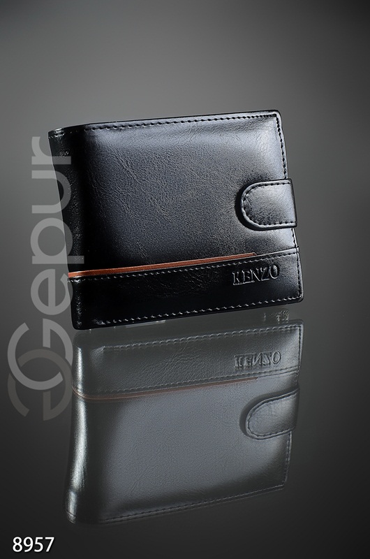 Кошелек мужской Kenzo из глянцевой эко-кожи. Застегивается на кнопку. Внутри 2 отделения, отделение под мелочь и под карточки.