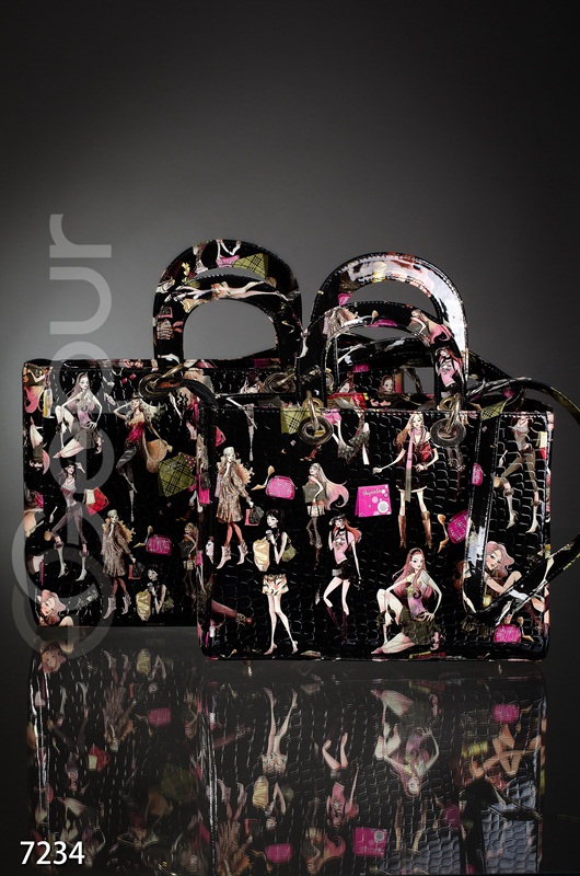 Сумка Lady Dior Красотки из лаковой эко-кожи, с рисунками, тисненная под рептилию. Застегивается на змейку, внутри одно большое отделение, внутри на боковой стенке кармашек на змейке, и 2 отделения - 1 отделение на змейке и 1 отделение с разделителем под мобильный телефон. Идет с регулируемым ремешком на плечо.