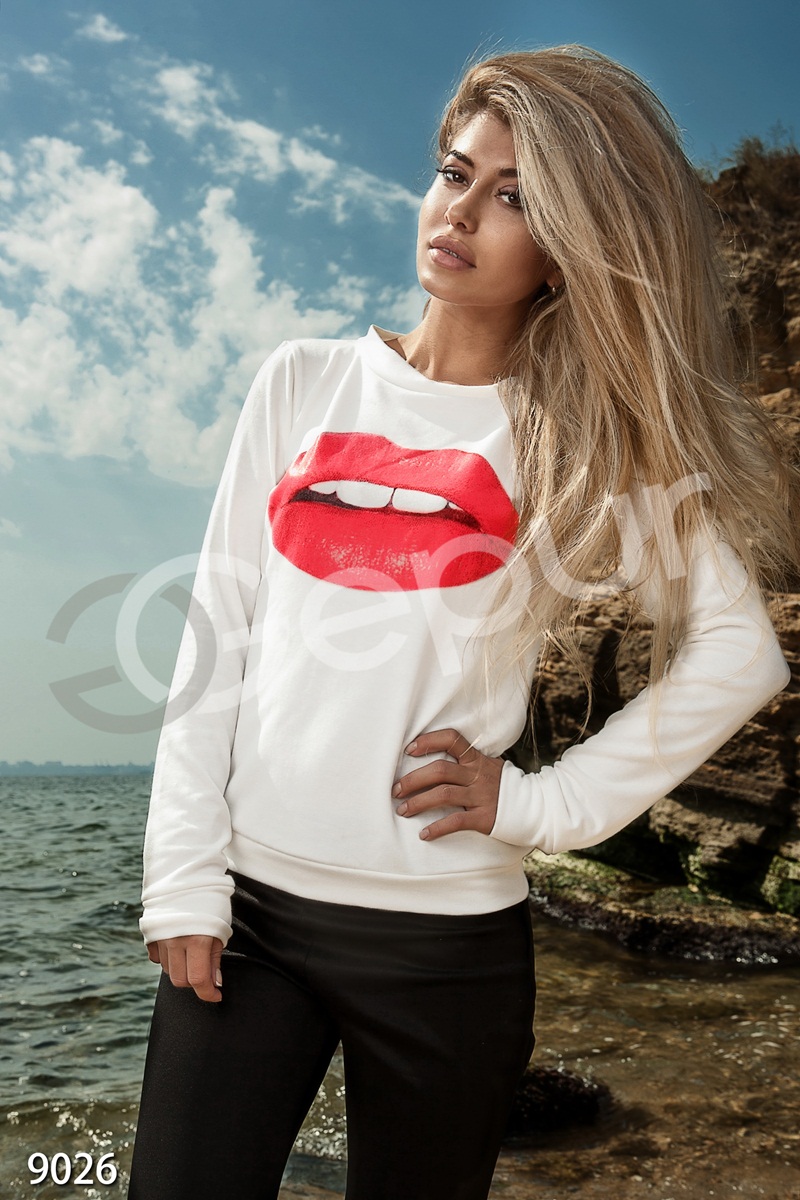 Цвет: молочный, накат - принт "губы" - красный