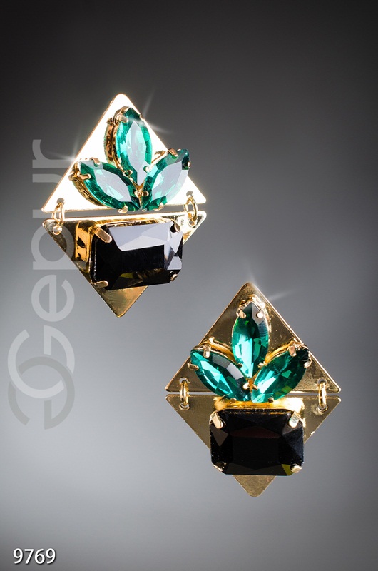 Цвет: трехлистник - изумруд, камень - черный, основа - золото