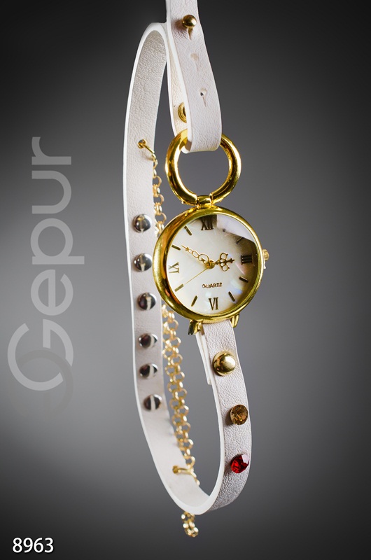 Цвет: ремешок - белый, часы - золото